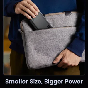 - Measuring 147 x 72 x 27 mm, this portable power bank easily fits into your bag or pocket, making it perfect for travel and everyday use.