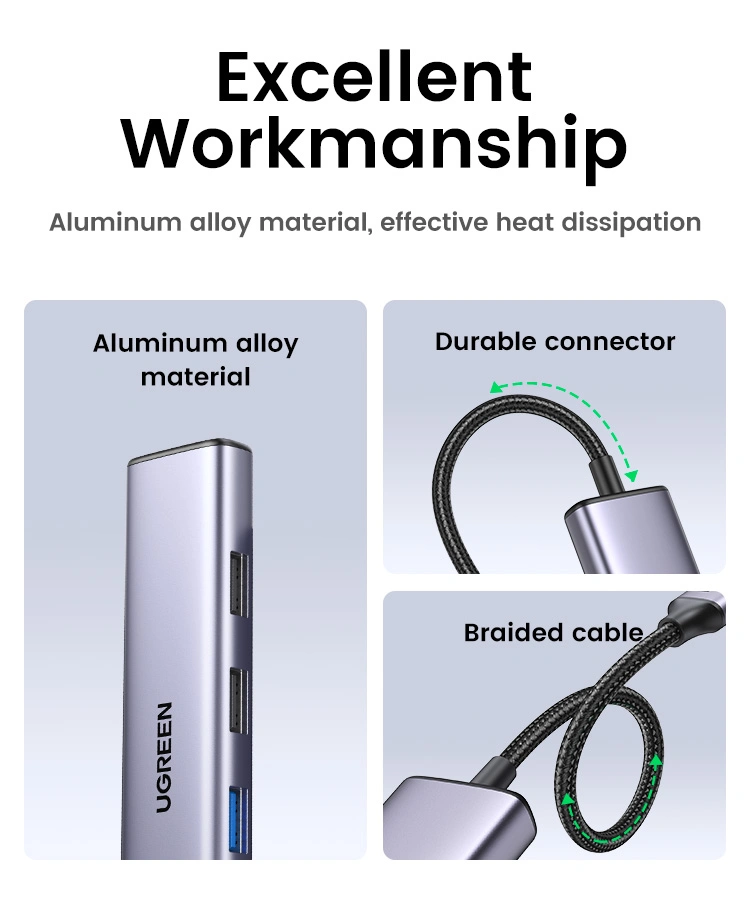 Upgrade your connectivity with the UGREEN CM478 Type-C Adapter, offering high-speed data transfer, 4K video output, and fast charging in a single, compact device!