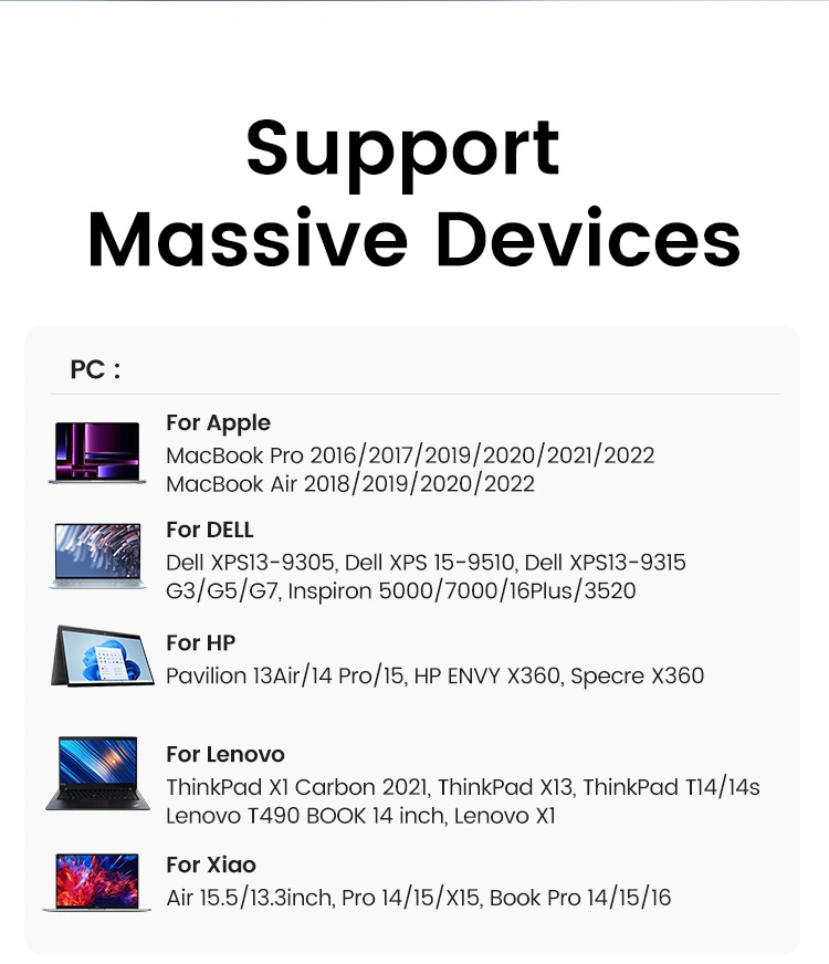• Compatible with laptops, tablets, smartphones, and other USB-C devices.
