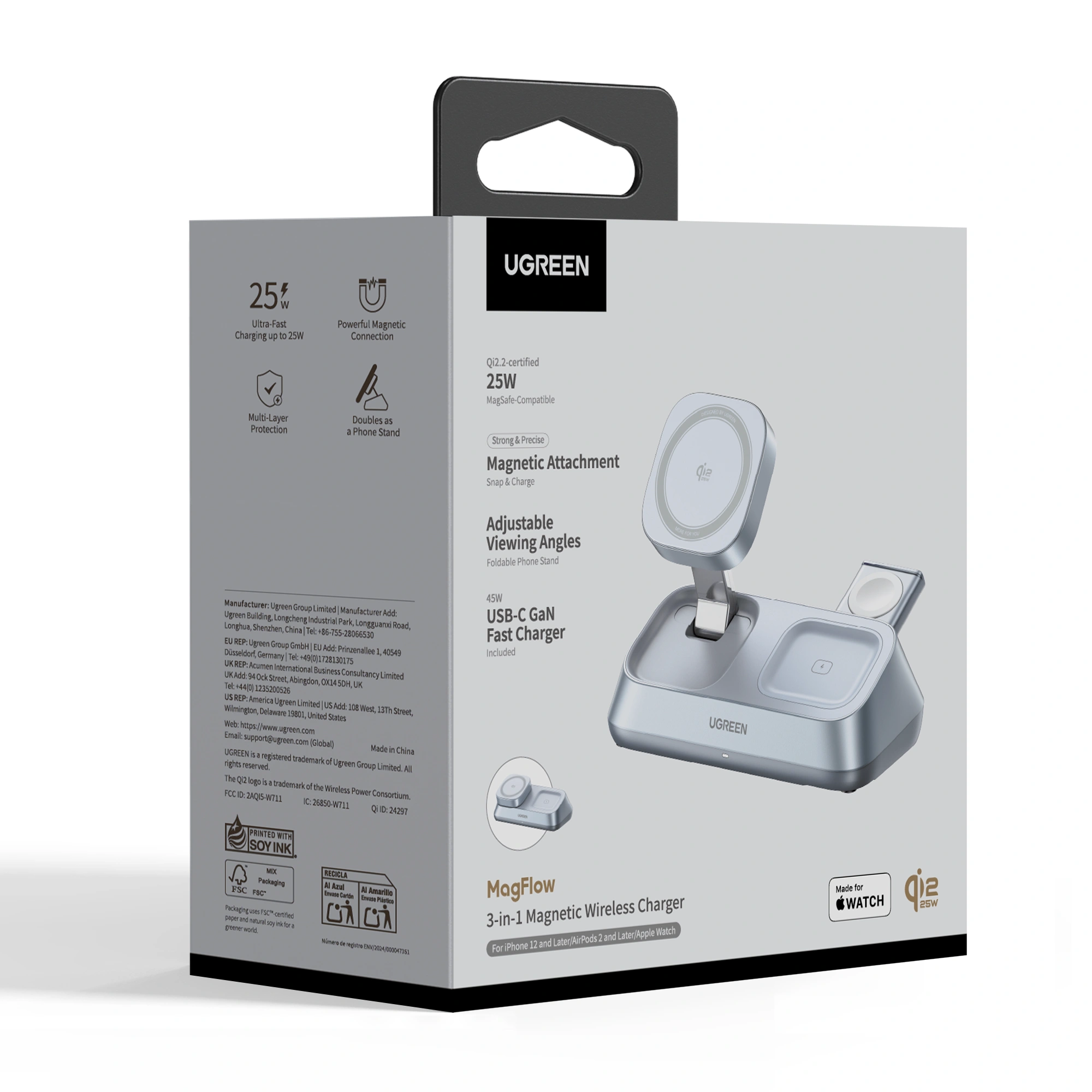 UGREEN MagFlow Qi2 25W 3-in-1 Magnetic Wireless Charger – W711 – 55678 – 1 Year Warranty