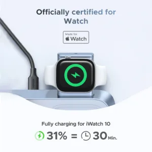 📱 3-in-1 Charging – Charges a smartphone, an Apple Watch, and wireless earbuds simultaneously, reducing the need for multiple chargers.