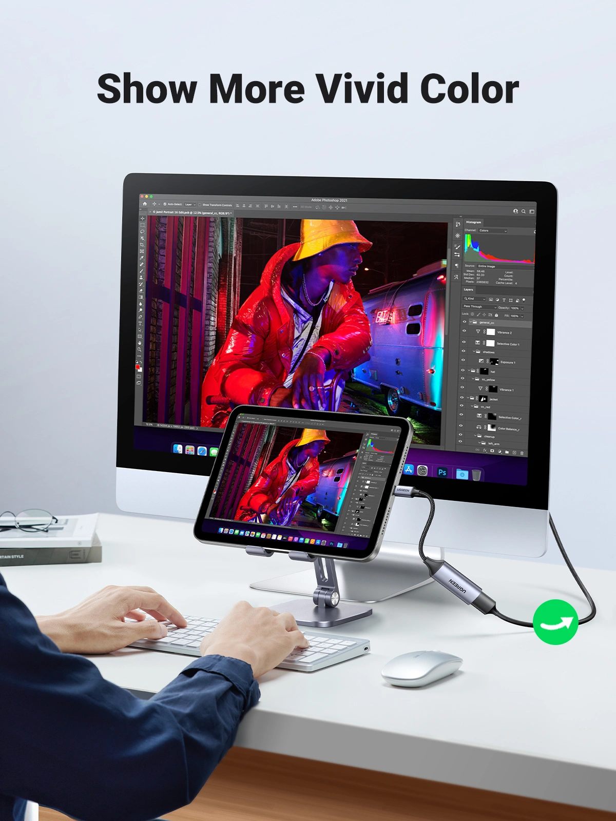 • Professional Use: Extend or mirror your display for presentations, multi-tasking, or graphic design.