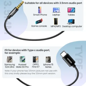 The UGREEN EP106 Wired Earphones are designed for universal compatibility, supporting all devices with a 3.5mm audio port, including: