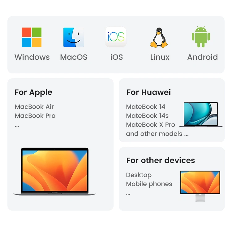 • Compatible with WindowsmacOSLinuxChrome OSAndroid, and other systems.