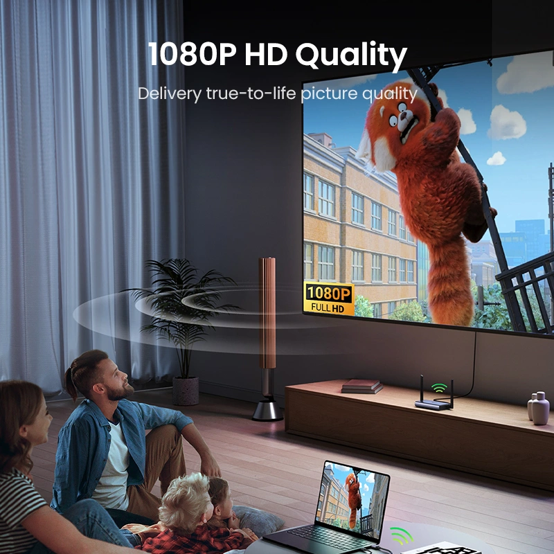 The UGREEN CM506 Wireless HDMI Transmitter Extender provides seamless wireless video and audio transmission over a distance of up to 50 meters. Supporting 1080P/60Hz resolution, it ensures crystal-clear visuals, making it perfect for home entertainment, business presentations, and conference rooms. With 5GHz wireless transmission, the device minimizes interference and guarantees stable and lag-free streaming.